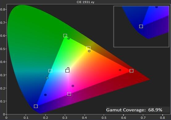 如果显示屏幕的原始色域达不到 REC-709 所要求的色域范围,其测量状态将是这样的 (见图 2):