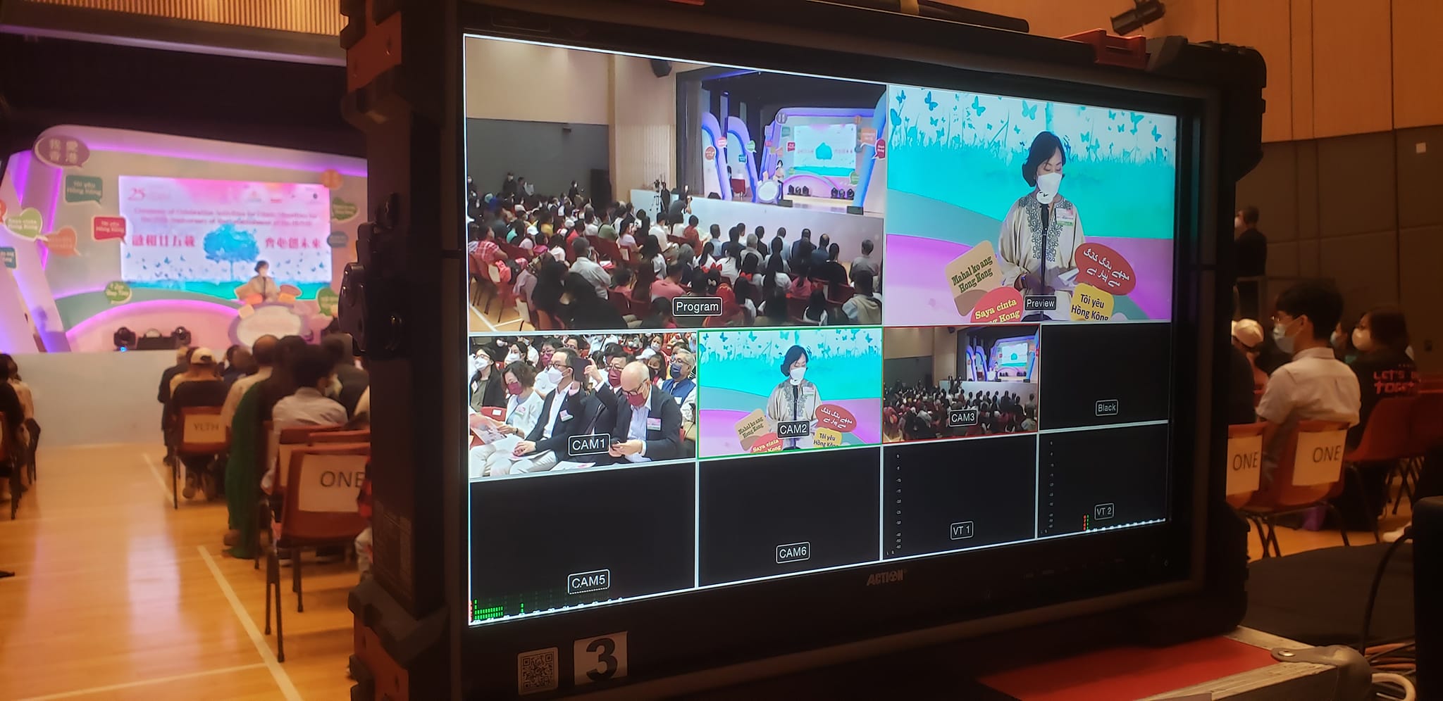 这么重要的时刻,自然少不了视频拍摄。现场安排了三个机位,分别从颁奖台、观众席、全景三个角度来进行拍摄。而负责此次拍摄的导演,正在观众席的后排,通过面前摆放的大尺寸铠甲一号监视器监看着摄像机拍摄的画面。