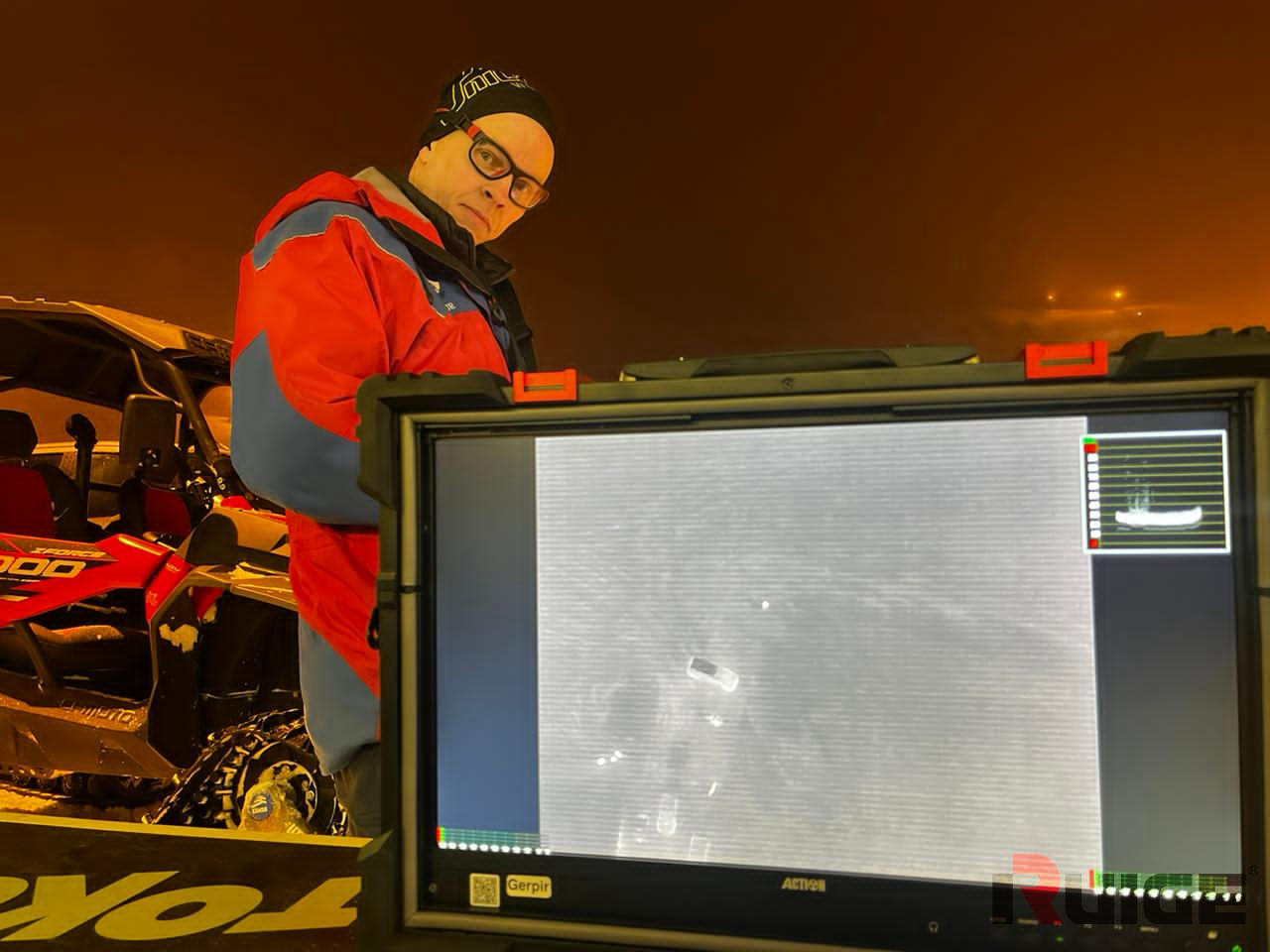 而地面搜救人员,通过大尺寸铠甲一号显示的红外热成像画面,一边引导直升机调整飞行方向,一边来精准定位被困人员的位置。