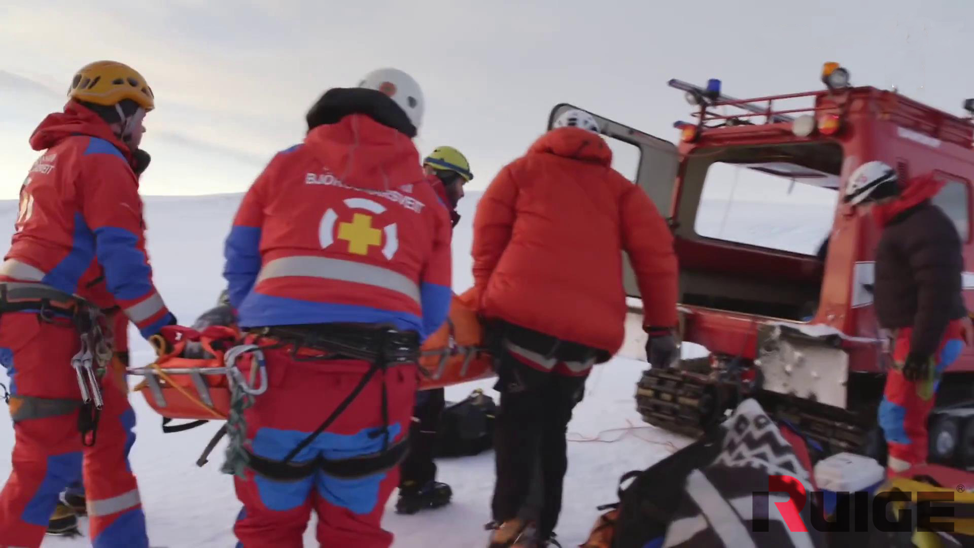 功夫不负有心人,在队员们的齐心努力下,终于将被困人员解救出来,但是因为天气寒冷已经陷入昏迷,只能将他抱行上去。