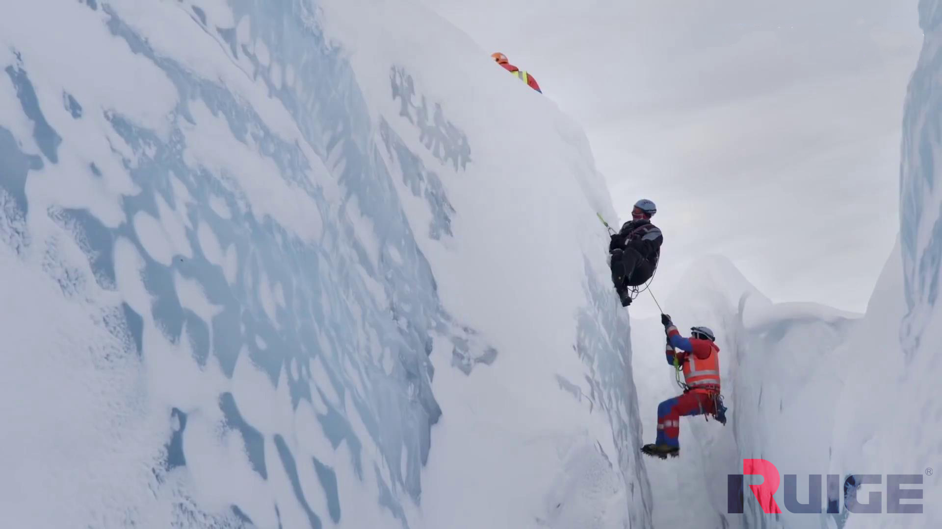 经过不断的搜索,终于在一处冰缝里发现了被困人员。救援人员立即放置救援绳,下到冰缝中展开营救。