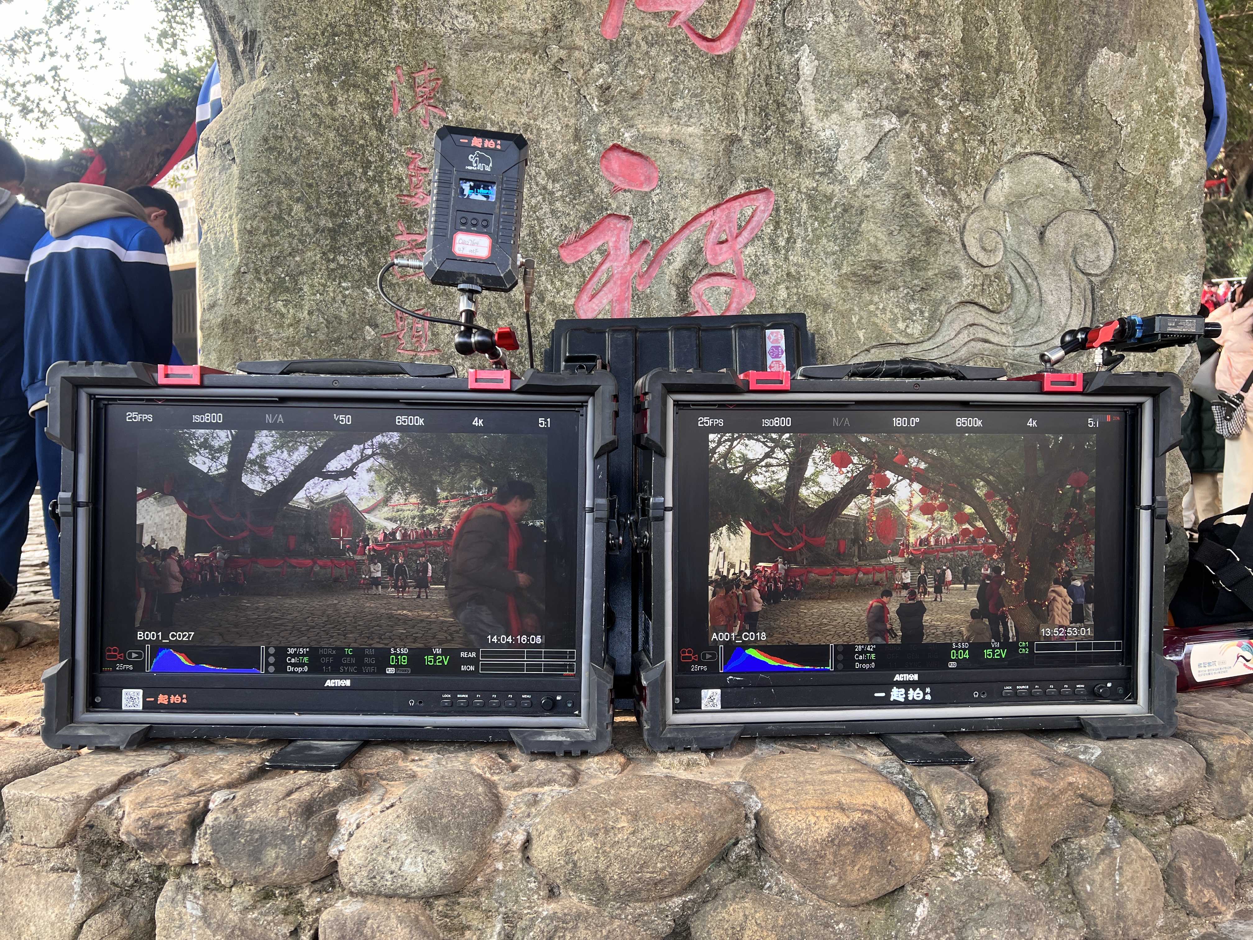 场务人员特意安排了两台大尺寸的铠甲一号监视器,通过无线图传与监视器相连,方便导演现场监看。他们能让导演快速准确的了解拍摄细节把握全局。