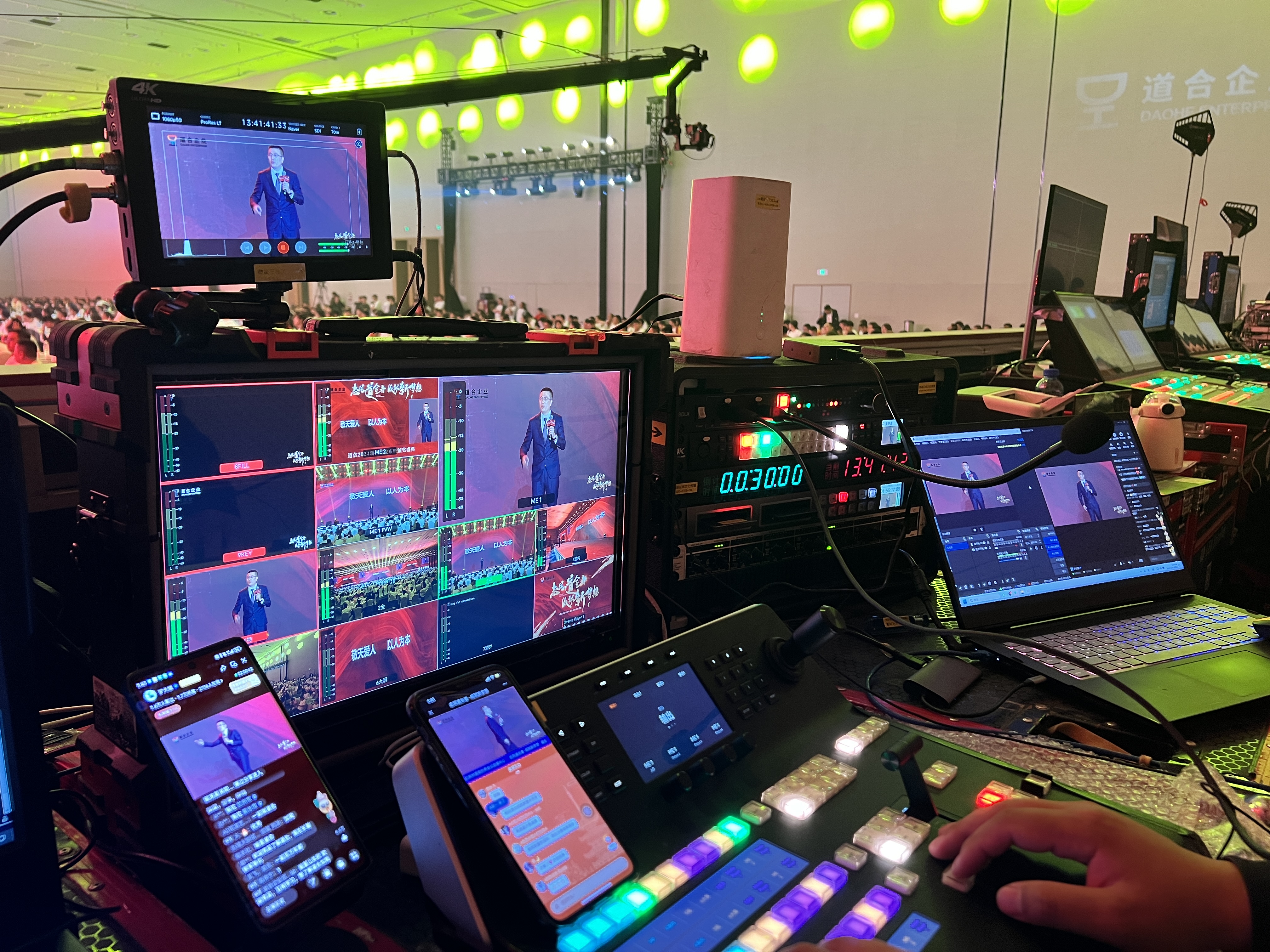 此外,强大的技术支持确保了发布会的顺利进行。道合企业通过多台监视器和实时控制设备,对现场进行全面监看和管理,确保活动万无一失。