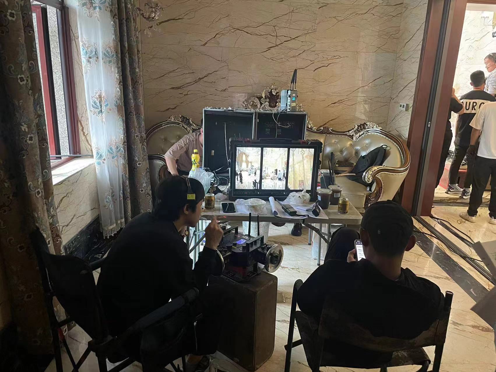 在一个豪华的室内拍摄场景中,布光师利用窗外的自然光作为主光,再配合室内的人工光源进行补光。通过一键测光功能,布光师能够快速检测到各个区域的曝光情况,并通过调整灯光位置和强度,迅速纠正曝光过度和曝光不足的问题,确保画面光线达到最佳效果。
