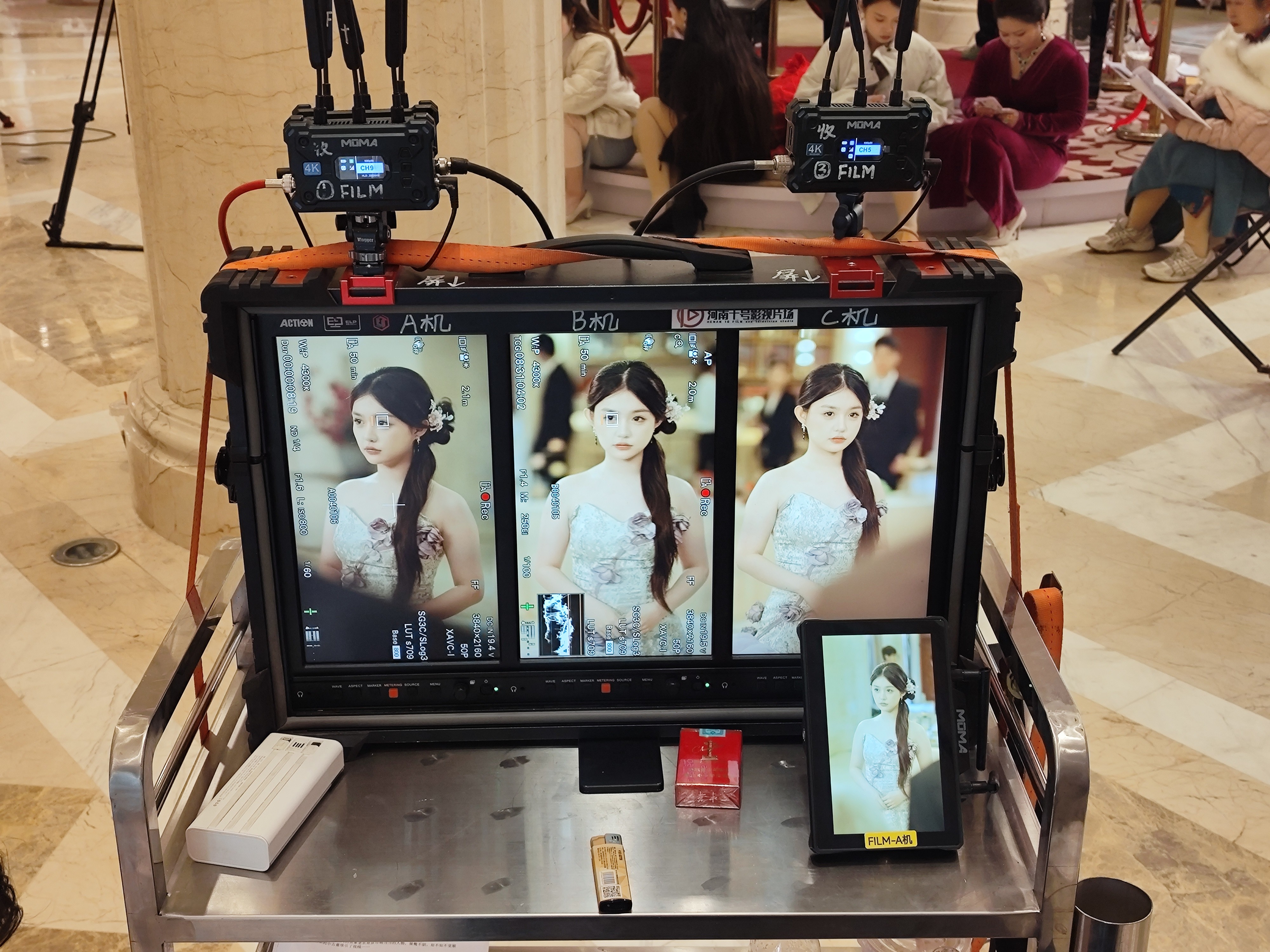 这让我想起十年前拍片的场景:笨重的监视器、复杂的布线、漫长的调试时间。而现在,这套三联竖屏监视器,让拍摄变得如此流畅——A机拍全景,B机抓特写,C机随时待命,所有画面同步呈现。片场不再有"再来一条"的焦躁,取而代之的是高效的创作节奏。