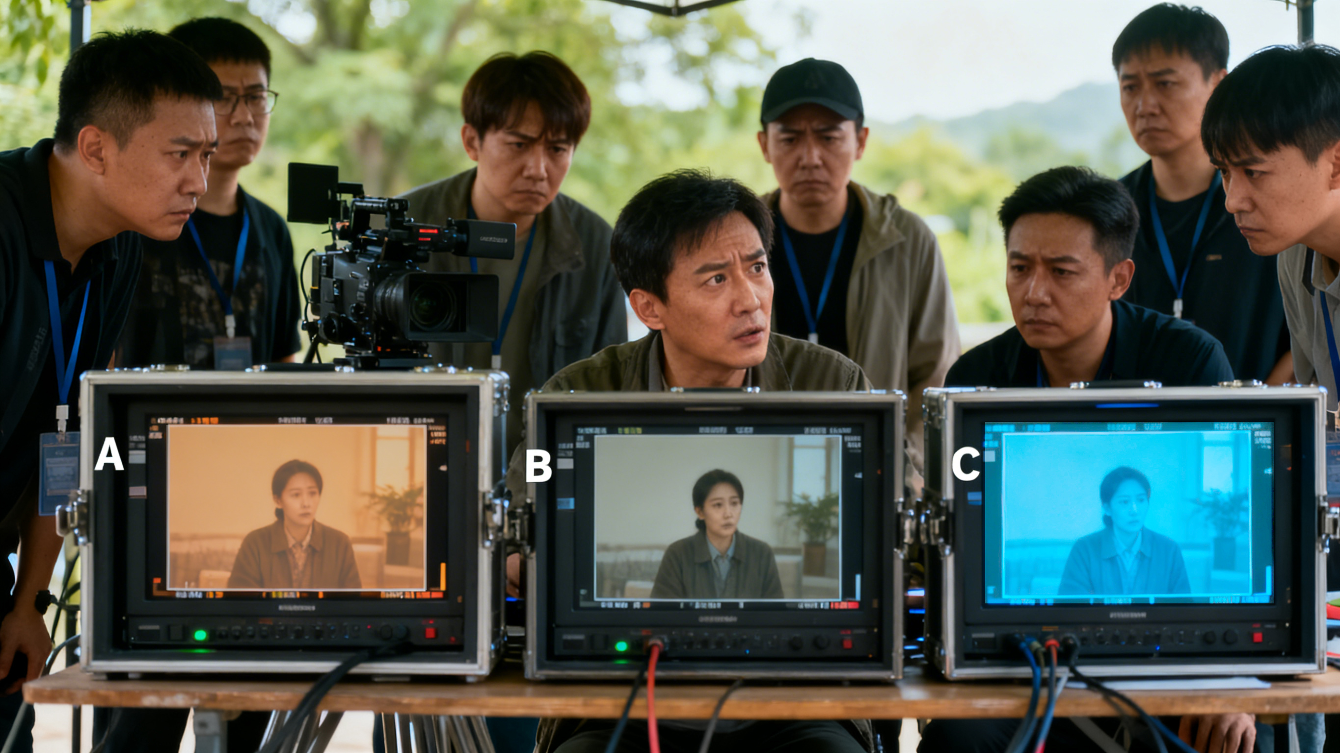 某现实题材短剧剧组的典型困境:三机位并行拍摄,因监视器未统一校准,导演在A机位确认的暖调氛围,B机位显示偏中性、C机位偏冷调。基础信号混乱直接打破视听语言统一性,决策效率与成片质量双受影响。