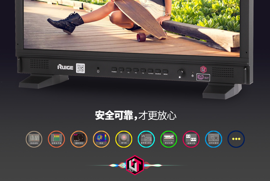 监视器内置3D-LUT色彩管理系统,遵循行业统一的色彩标准,采用专业的检测设备,对监视器进行系统、精确的校准,使监视器的显色指标符合色域规范的容差范围,从而确保了监视器准确的色彩还原,同时最大程度保证了同型号监视器色彩呈现的一致性。